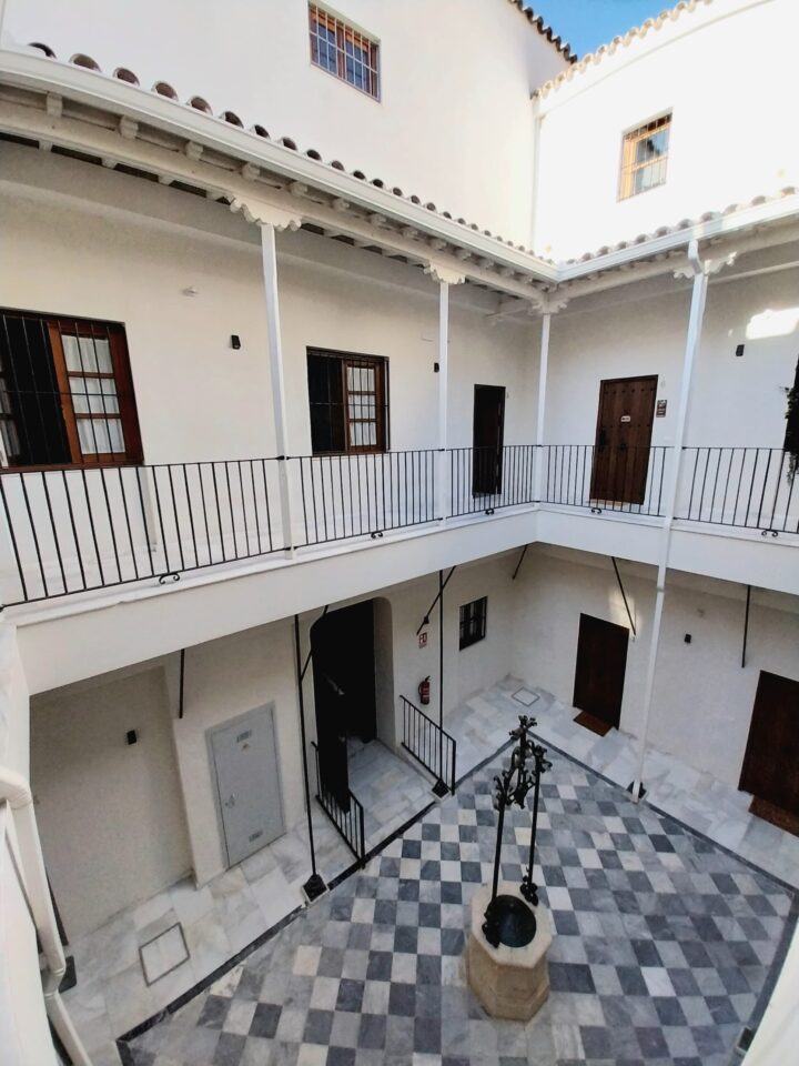 Desde su precioso balcón se pueden contemplar los tejados y torres que dibujan el alma de Jerez, mientras que el patio de acceso comunitario conserva la esencia de las antiguas casas señoriales andaluzas.